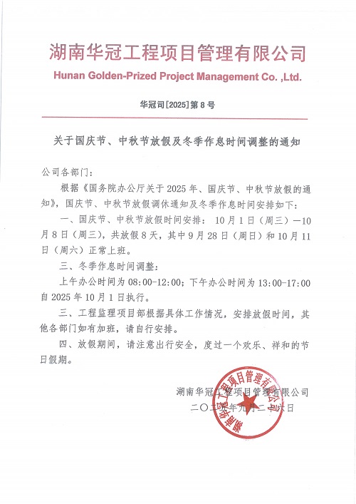 2025年國慶節(jié)、中秋節(jié)放假及冬季作息時(shí)間調(diào)整的通知